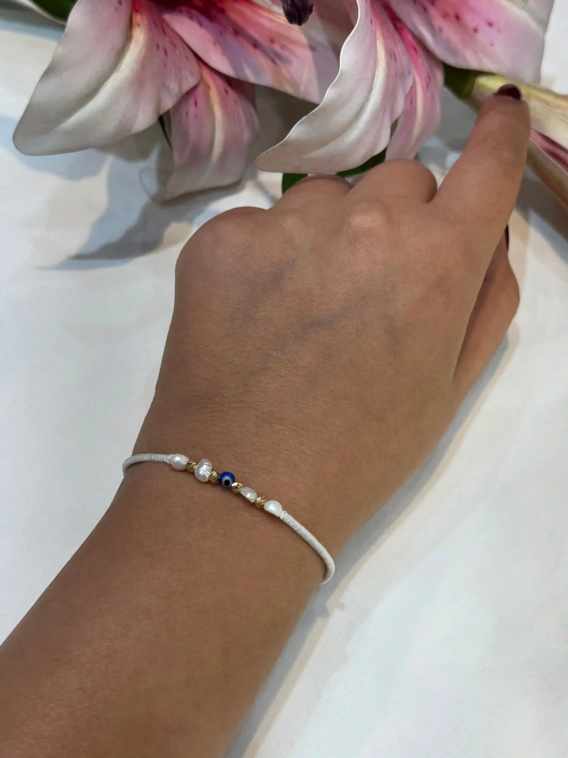 خانه دستبند دستبند گوی و چشم نظر با بند سفید