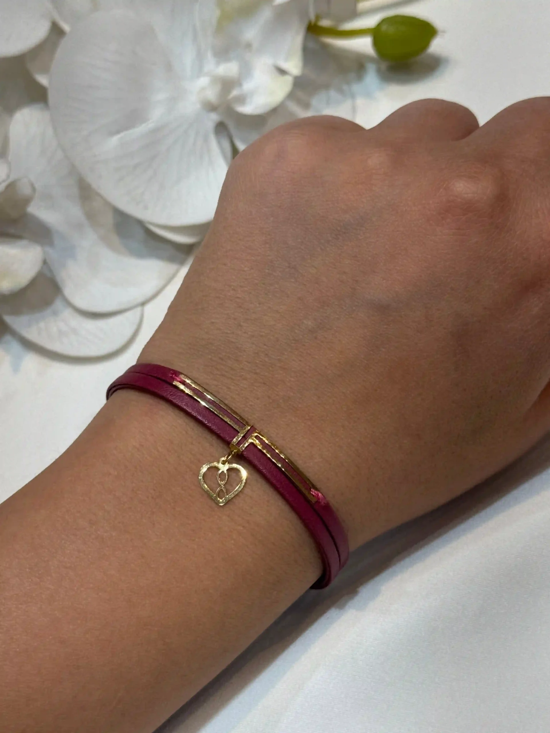 خانه دستبند دستبند آویز قلب با چرم زرشکی