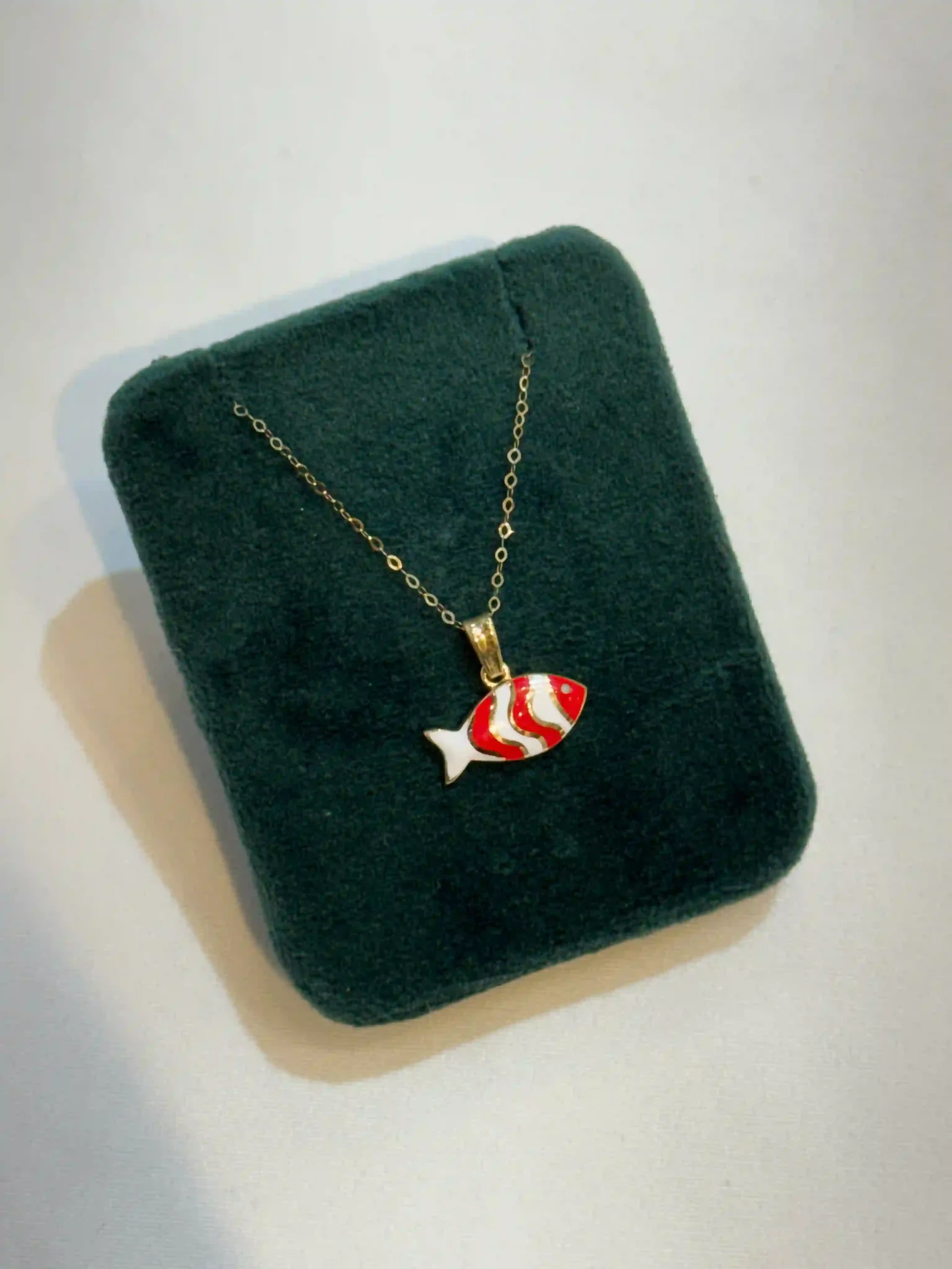 پلاک ماهی با لعاب قرمز و سفید
